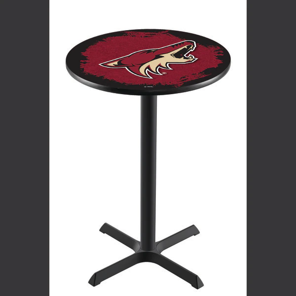 Made for the ultimate sports fan, you will be proud to show where your loyalty lies with this impressive Officially Licensed pub table from the Holland Bar Stool Co. This L211 table with cross base is sure to add a touch of class to your setting. You can't find a higher quality logo table on the market. The sublimated, full color, scratch resistant, laminate top it attached with a VOC free, environmentally friendly, hot-melt adhesive. Table bases are commercial quality with a cast iron base plate, steel column, and spider. The base is powder coated black wrinkle to ensure a rich, sleek, long lasting finish. The bases are easy to assemble and with locking tabs, top and bottom, are strong and steady. Tables have adjustable feet to accomodate any floor surface. If you're going to finish your bar, game room, or man cave – do it right with a table from the Holland Bar Stool Co.