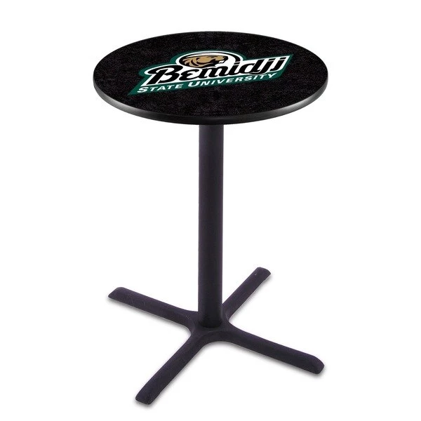 Made for the ultimate sports fan, you will be proud to show where your loyalty lies with this impressive Officially Licensed pub table from the Holland Bar Stool Co. This L211 table with cross base is sure to add a touch of class to your setting. You can't find a higher quality logo table on the market. The sublimated, full color, scratch resistant, laminate top it attached with a VOC free, environmentally friendly, hot-melt adhesive. Table bases are commercial quality with a cast iron base plate, steel column, and spider. The base is powder coated black wrinkle to ensure a rich, sleek, long lasting finish. The bases are easy to assemble and with locking tabs, top and bottom, are strong and steady. Tables have adjustable feet to accomodate any floor surface. If you're going to finish your bar, game room, or man cave – do it right with a table from the Holland Bar Stool Co.