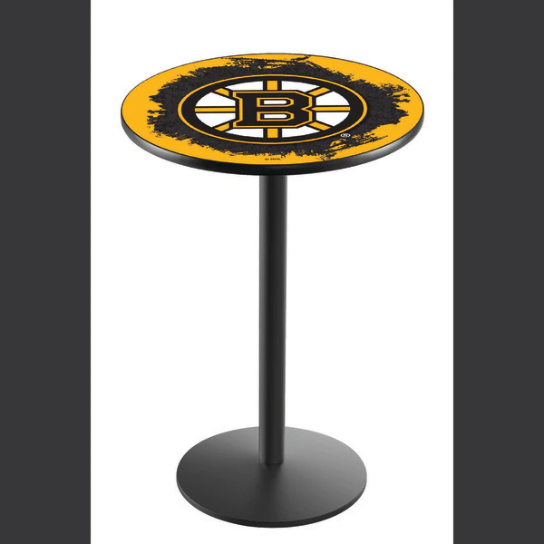 Made for the ultimate sports fan, you will be proud to show where your loyalty lies with this impressive Officially Licensed pub table from the Holland Bar Stool Co. This L214 table with round base is sure to add a touch of class to your setting. You can't find a higher quality logo table on the market. The sublimated, full color, scratch resistant, laminate top it attached with a VOC free, environmentally friendly, hot-melt adhesive. Table bases are commercial quality with a cast iron base plate, steel column, and spider. The base is powder coated black wrinkle to ensure a rich, sleek, long lasting finish. The bases are easy to assemble and with locking tabs, top and bottom, are strong and steady. Tables have adjustable feet to accomodate any floor surface. If you're going to finish your bar, game room, or man cave – do it right with a table from the Holland Bar Stool Co.