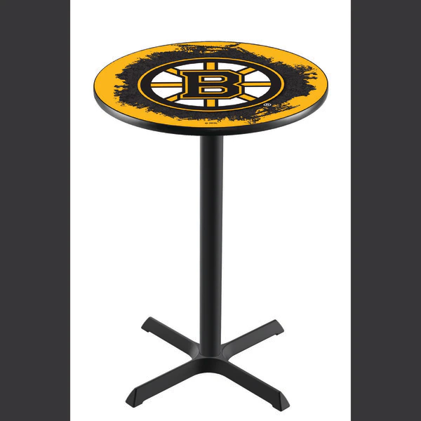 Made for the ultimate sports fan, you will be proud to show where your loyalty lies with this impressive Officially Licensed pub table from the Holland Bar Stool Co. This L211 table with cross base is sure to add a touch of class to your setting. You can't find a higher quality logo table on the market. The sublimated, full color, scratch resistant, laminate top it attached with a VOC free, environmentally friendly, hot-melt adhesive. Table bases are commercial quality with a cast iron base plate, steel column, and spider. The base is powder coated black wrinkle to ensure a rich, sleek, long lasting finish. The bases are easy to assemble and with locking tabs, top and bottom, are strong and steady. Tables have adjustable feet to accomodate any floor surface. If you're going to finish your bar, game room, or man cave – do it right with a table from the Holland Bar Stool Co.