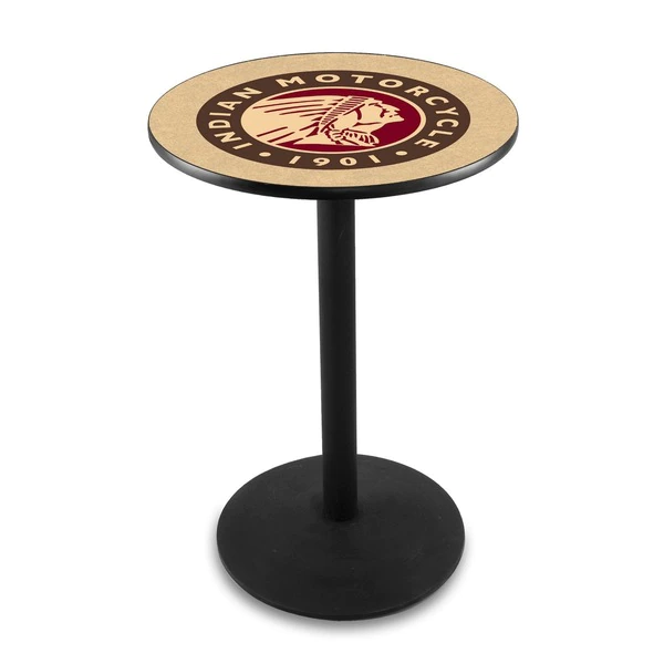 Made for the ultimate Indian Motorcycle enthusiast, you will be proud to show where your loyalty lies with this impressive Officially Licensed pub table from the Holland Bar Stool Co. This L214 table with round base is sure to add a touch of class to your setting. You can't find a higher quality logo table on the market. The sublimated, full color, scratch resistant, laminate top it attached with a VOC free, environmentally friendly, hot-melt adhesive. Table bases are commercial quality with a cast iron base plate, steel column, and spider. The base is a 304 Stainless Steel that will look great no matter where you put it. The bases are easy to assemble and with locking tabs, top and bottom, are strong and steady. Tables have adjustable feet to accomodate any floor surface. If you're going to finish your bar, game room, or man cave – do it right with a table from the Holland Bar Stool Co.