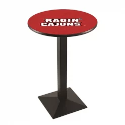 Made for the ultimate sports fan, you will be proud to show where your loyalty lies with this impressive Officially Licensed pub table from the Holland Bar Stool Co. This L217 table with square base is sure to add a touch of class to your setting. You can't find a higher quality logo table on the market. The sublimated, full color, scratch resistant, laminate top it attached with a VOC free, environmentally friendly, hot-melt adhesive. Table bases are commercial quality with a cast iron base plate, steel column, and spider. The base is powder coated black wrinkle to ensure a rich, sleek, long lasting finish. The bases are easy to assemble and with locking tabs, top and bottom, are strong and steady. Tables have adjustable feet to accomodate any floor surface. If you're going to finish your bar, game room, or man cave – do it right with a table from the Holland Bar Stool Co.