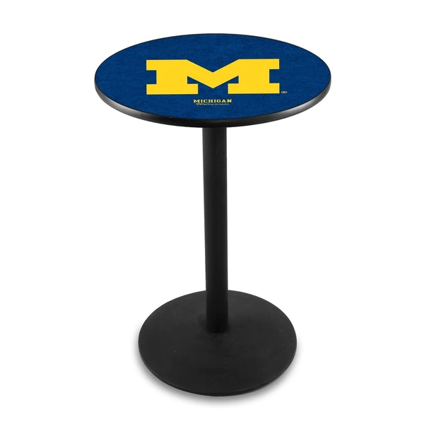 Made for the ultimate sports fan, you will be proud to show where your loyalty lies with this impressive Officially Licensed pub table from the Holland Bar Stool Co. This L214 table with round base is sure to add a touch of class to your setting. You can't find a higher quality logo table on the market. The sublimated, full color, scratch resistant, laminate top it attached with a VOC free, environmentally friendly, hot-melt adhesive. Table bases are commercial quality with a cast iron base plate, steel column, and spider. The base is powder coated black wrinkle to ensure a rich, sleek, long lasting finish. The bases are easy to assemble and with locking tabs, top and bottom, are strong and steady. Tables have adjustable feet to accomodate any floor surface. If you're going to finish your bar, game room, or man cave – do it right with a table from the Holland Bar Stool Co.