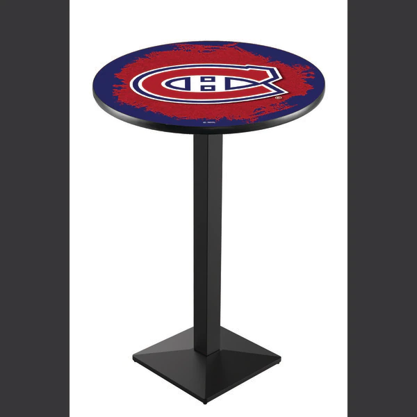 Made for the ultimate sports fan, you will be proud to show where your loyalty lies with this impressive Officially Licensed pub table from the Holland Bar Stool Co. This L217 table with square base is sure to add a touch of class to your setting. You can't find a higher quality logo table on the market. The sublimated, full color, scratch resistant, laminate top it attached with a VOC free, environmentally friendly, hot-melt adhesive. Table bases are commercial quality with a cast iron base plate, steel column, and spider. The base is powder coated black wrinkle to ensure a rich, sleek, long lasting finish. The bases are easy to assemble and with locking tabs, top and bottom, are strong and steady. Tables have adjustable feet to accomodate any floor surface. If you're going to finish your bar, game room, or man cave – do it right with a table from the Holland Bar Stool Co.
