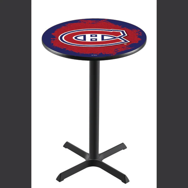 Made for the ultimate sports fan, you will be proud to show where your loyalty lies with this impressive Officially Licensed pub table from the Holland Bar Stool Co. This L211 table with cross base is sure to add a touch of class to your setting. You can't find a higher quality logo table on the market. The sublimated, full color, scratch resistant, laminate top it attached with a VOC free, environmentally friendly, hot-melt adhesive. Table bases are commercial quality with a cast iron base plate, steel column, and spider. The base is powder coated black wrinkle to ensure a rich, sleek, long lasting finish. The bases are easy to assemble and with locking tabs, top and bottom, are strong and steady. Tables have adjustable feet to accomodate any floor surface. If you're going to finish your bar, game room, or man cave – do it right with a table from the Holland Bar Stool Co.