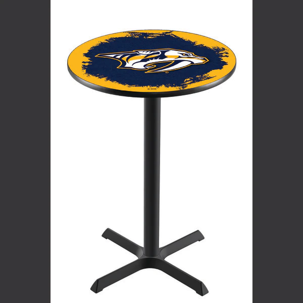 Made for the ultimate sports fan, you will be proud to show where your loyalty lies with this impressive Officially Licensed pub table from the Holland Bar Stool Co. This L211 table with cross base is sure to add a touch of class to your setting. You can't find a higher quality logo table on the market. The sublimated, full color, scratch resistant, laminate top it attached with a VOC free, environmentally friendly, hot-melt adhesive. Table bases are commercial quality with a cast iron base plate, steel column, and spider. The base is powder coated black wrinkle to ensure a rich, sleek, long lasting finish. The bases are easy to assemble and with locking tabs, top and bottom, are strong and steady. Tables have adjustable feet to accomodate any floor surface. If you're going to finish your bar, game room, or man cave – do it right with a table from the Holland Bar Stool Co.