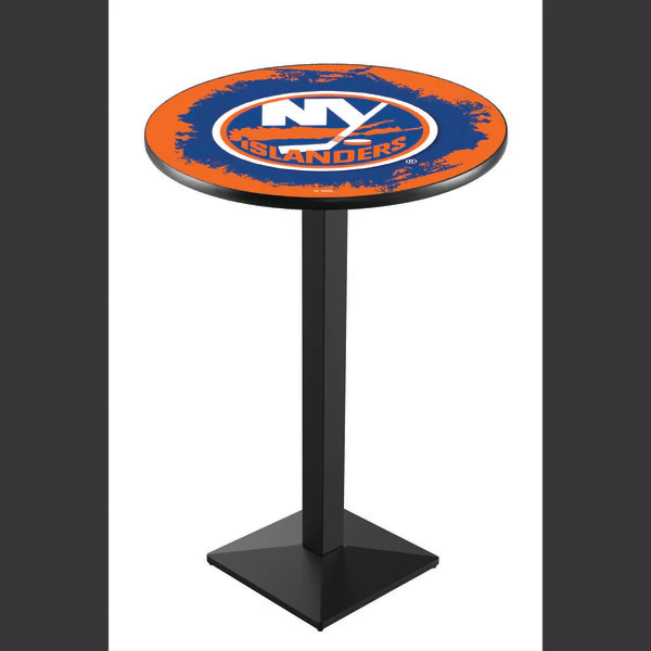 Made for the ultimate sports fan, you will be proud to show where your loyalty lies with this impressive Officially Licensed pub table from the Holland Bar Stool Co. This L217 table with square base is sure to add a touch of class to your setting. You can't find a higher quality logo table on the market. The sublimated, full color, scratch resistant, laminate top it attached with a VOC free, environmentally friendly, hot-melt adhesive. Table bases are commercial quality with a cast iron base plate, steel column, and spider. The base is powder coated black wrinkle to ensure a rich, sleek, long lasting finish. The bases are easy to assemble and with locking tabs, top and bottom, are strong and steady. Tables have adjustable feet to accomodate any floor surface. If you're going to finish your bar, game room, or man cave – do it right with a table from the Holland Bar Stool Co.