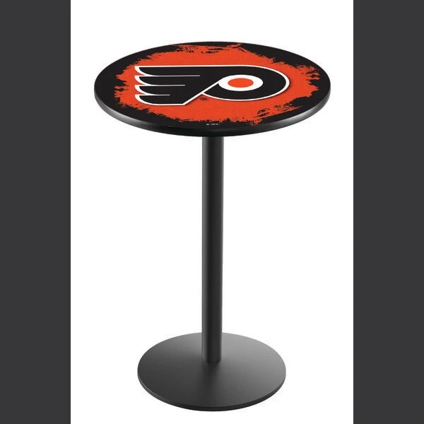 Made for the ultimate sports fan, you will be proud to show where your loyalty lies with this impressive Officially Licensed pub table from the Holland Bar Stool Co. This L214 table with round base is sure to add a touch of class to your setting. You can't find a higher quality logo table on the market. The sublimated, full color, scratch resistant, laminate top it attached with a VOC free, environmentally friendly, hot-melt adhesive. Table bases are commercial quality with a cast iron base plate, steel column, and spider. The base is powder coated black wrinkle to ensure a rich, sleek, long lasting finish. The bases are easy to assemble and with locking tabs, top and bottom, are strong and steady. Tables have adjustable feet to accomodate any floor surface. If you're going to finish your bar, game room, or man cave – do it right with a table from the Holland Bar Stool Co.