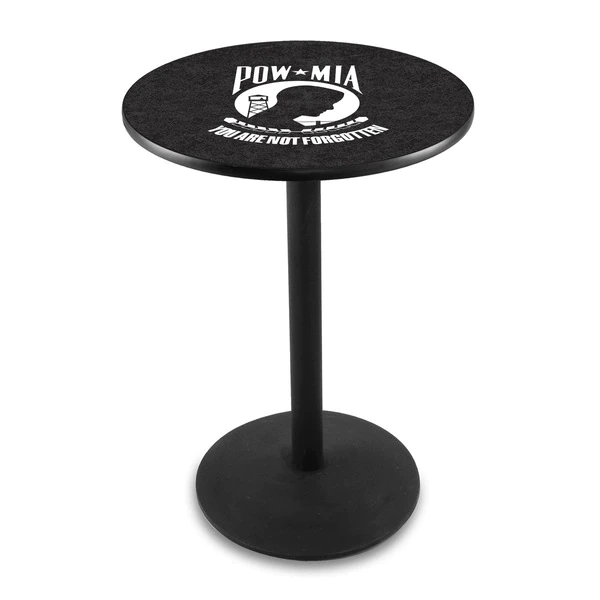 Show your support for our troops (past and present) with this impressive Officially Licensed pub table from the Holland Bar Stool Co. This L214 table with round base is sure to add a touch of class to your setting. You can't find a higher quality logo table on the market. The sublimated, full color, scratch resistant, laminate top it attached with a VOC free, environmentally friendly, hot-melt adhesive. Table bases are commercial quality with a cast iron base plate, steel column, and spider. The base is powder coated black wrinkle to ensure a rich, sleek, long lasting finish. The bases are easy to assemble and with locking tabs, top and bottom, are strong and steady. Tables have adjustable feet to accomodate any floor surface. If you're going to finish your bar, game room, or man cave – do it right with a table from the Holland Bar Stool Co.
