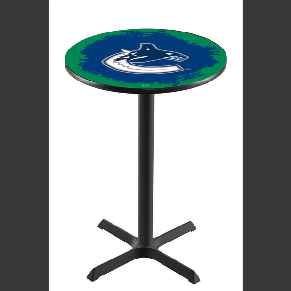 Made for the ultimate sports fan, you will be proud to show where your loyalty lies with this impressive Officially Licensed pub table from the Holland Bar Stool Co. This L211 table with cross base is sure to add a touch of class to your setting. You can't find a higher quality logo table on the market. The sublimated, full color, scratch resistant, laminate top it attached with a VOC free, environmentally friendly, hot-melt adhesive. Table bases are commercial quality with a cast iron base plate, steel column, and spider. The base is powder coated black wrinkle to ensure a rich, sleek, long lasting finish. The bases are easy to assemble and with locking tabs, top and bottom, are strong and steady. Tables have adjustable feet to accomodate any floor surface. If you're going to finish your bar, game room, or man cave – do it right with a table from the Holland Bar Stool Co.