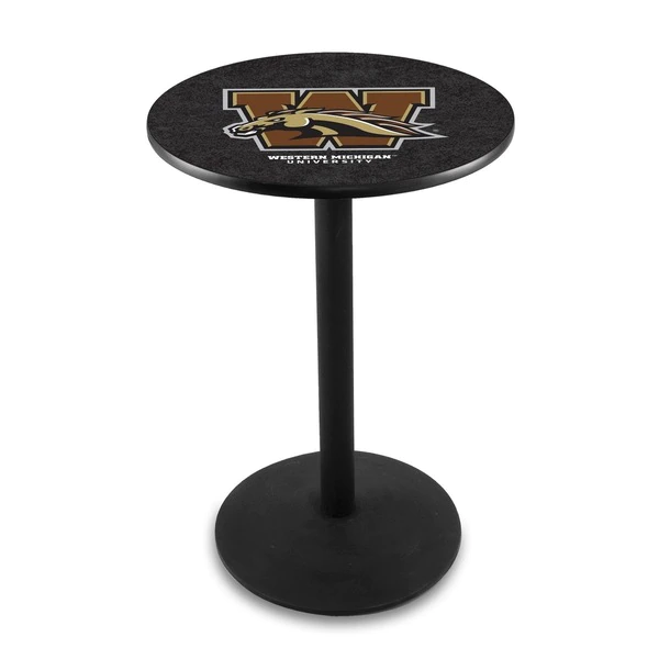 Made for the ultimate sports fan, you will be proud to show where your loyalty lies with this impressive Officially Licensed pub table from the Holland Bar Stool Co. This L214 table with round base is sure to add a touch of class to your setting. You can't find a higher quality logo table on the market. The sublimated, full color, scratch resistant, laminate top it attached with a VOC free, environmentally friendly, hot-melt adhesive. Table bases are commercial quality with a cast iron base plate, steel column, and spider. The base is powder coated black wrinkle to ensure a rich, sleek, long lasting finish. The bases are easy to assemble and with locking tabs, top and bottom, are strong and steady. Tables have adjustable feet to accomodate any floor surface. If you're going to finish your bar, game room, or man cave – do it right with a table from the Holland Bar Stool Co.