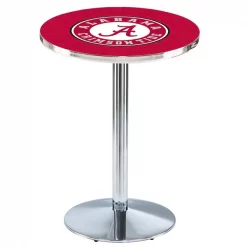 Made for the ultimate sports fan, you will be proud to show where your loyalty lies with this impressive Officially Licensed pub table from the Holland Bar Stool Co. This L214 table with round base is sure to add a touch of class to your setting. You can't find a higher quality logo table on the market. The sublimated, full color, scratch resistant, laminate top it attached with a VOC free, environmentally friendly, hot-melt adhesive. Table bases are commercial quality with a cast iron base plate, steel column, and spider. The base is triple chrome plated to ensure a rich, sleek, long lasting finish. The bases are easy to assemble and with locking tabs, top and bottom, are strong and steady. Tables have adjustable feet to accomodate any floor surface. If you're going to finish your bar, game room, or man cave – do it right with a table from the Holland Bar Stool Co.