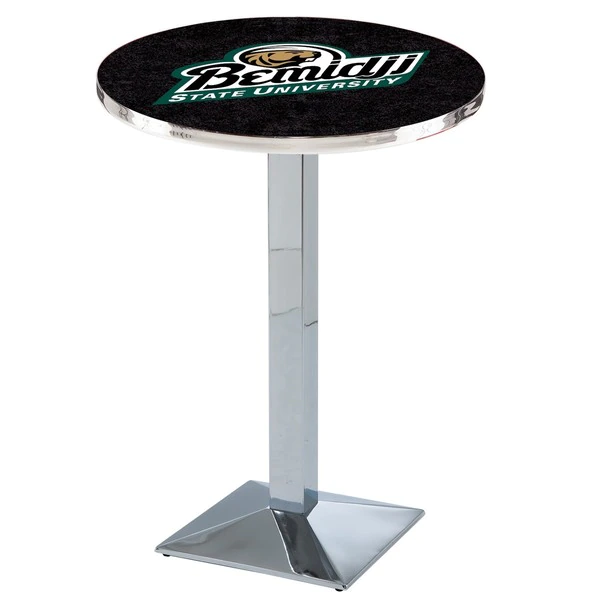 Made for the ultimate sports fan, you will be proud to show where your loyalty lies with this impressive Officially Licensed pub table from the Holland Bar Stool Co. This L217 table with square base is sure to add a touch of class to your setting. You can't find a higher quality logo table on the market. The sublimated, full color, scratch resistant, laminate top it attached with a VOC free, environmentally friendly, hot-melt adhesive. Table bases are commercial quality with a cast iron base plate, steel column, and spider. The base is triple chrome plated to ensure a rich, sleek, long lasting finish. The bases are easy to assemble and with locking tabs, top and bottom, are strong and steady. Tables have adjustable feet to accomodate any floor surface. If you're going to finish your bar, game room, or man cave – do it right with a table from the Holland Bar Stool Co.