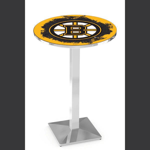 Made for the ultimate sports fan, you will be proud to show where your loyalty lies with this impressive Officially Licensed pub table from the Holland Bar Stool Co. This L217 table with square base is sure to add a touch of class to your setting. You can't find a higher quality logo table on the market. The sublimated, full color, scratch resistant, laminate top it attached with a VOC free, environmentally friendly, hot-melt adhesive. Table bases are commercial quality with a cast iron base plate, steel column, and spider. The base is triple chrome plated to ensure a rich, sleek, long lasting finish. The bases are easy to assemble and with locking tabs, top and bottom, are strong and steady. Tables have adjustable feet to accomodate any floor surface. If you're going to finish your bar, game room, or man cave – do it right with a table from the Holland Bar Stool Co.
