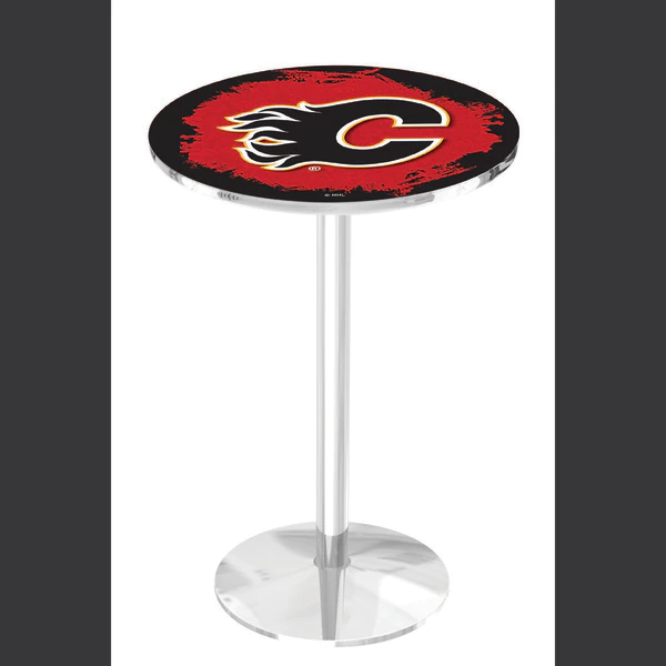 Made for the ultimate sports fan, you will be proud to show where your loyalty lies with this impressive Officially Licensed pub table from the Holland Bar Stool Co. This L214 table with round base is sure to add a touch of class to your setting. You can't find a higher quality logo table on the market. The sublimated, full color, scratch resistant, laminate top it attached with a VOC free, environmentally friendly, hot-melt adhesive. Table bases are commercial quality with a cast iron base plate, steel column, and spider. The base is triple chrome plated to ensure a rich, sleek, long lasting finish. The bases are easy to assemble and with locking tabs, top and bottom, are strong and steady. Tables have adjustable feet to accomodate any floor surface. If you're going to finish your bar, game room, or man cave – do it right with a table from the Holland Bar Stool Co.