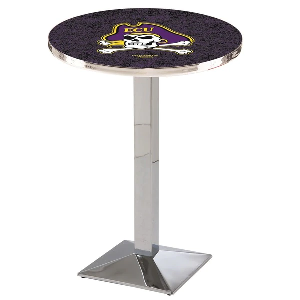 Made for the ultimate sports fan, you will be proud to show where your loyalty lies with this impressive Officially Licensed pub table from the Holland Bar Stool Co. This L217 table with square base is sure to add a touch of class to your setting. You can't find a higher quality logo table on the market. The sublimated, full color, scratch resistant, laminate top it attached with a VOC free, environmentally friendly, hot-melt adhesive. Table bases are commercial quality with a cast iron base plate, steel column, and spider. The base is triple chrome plated to ensure a rich, sleek, long lasting finish. The bases are easy to assemble and with locking tabs, top and bottom, are strong and steady. Tables have adjustable feet to accomodate any floor surface. If you're going to finish your bar, game room, or man cave – do it right with a table from the Holland Bar Stool Co.