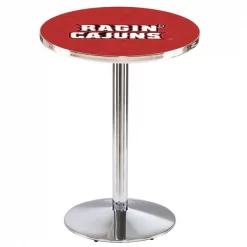 Made for the ultimate sports fan, you will be proud to show where your loyalty lies with this impressive Officially Licensed pub table from the Holland Bar Stool Co. This L214 table with round base is sure to add a touch of class to your setting. You can't find a higher quality logo table on the market. The sublimated, full color, scratch resistant, laminate top it attached with a VOC free, environmentally friendly, hot-melt adhesive. Table bases are commercial quality with a cast iron base plate, steel column, and spider. The base is triple chrome plated to ensure a rich, sleek, long lasting finish. The bases are easy to assemble and with locking tabs, top and bottom, are strong and steady. Tables have adjustable feet to accomodate any floor surface. If you're going to finish your bar, game room, or man cave – do it right with a table from the Holland Bar Stool Co.