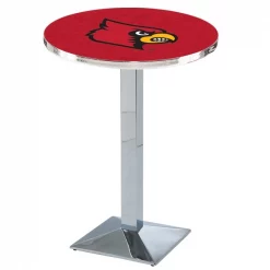 Made for the ultimate sports fan, you will be proud to show where your loyalty lies with this impressive Officially Licensed pub table from the Holland Bar Stool Co. This L217 table with square base is sure to add a touch of class to your setting. You can't find a higher quality logo table on the market. The sublimated, full color, scratch resistant, laminate top it attached with a VOC free, environmentally friendly, hot-melt adhesive. Table bases are commercial quality with a cast iron base plate, steel column, and spider. The base is triple chrome plated to ensure a rich, sleek, long lasting finish. The bases are easy to assemble and with locking tabs, top and bottom, are strong and steady. Tables have adjustable feet to accomodate any floor surface. If you're going to finish your bar, game room, or man cave – do it right with a table from the Holland Bar Stool Co.