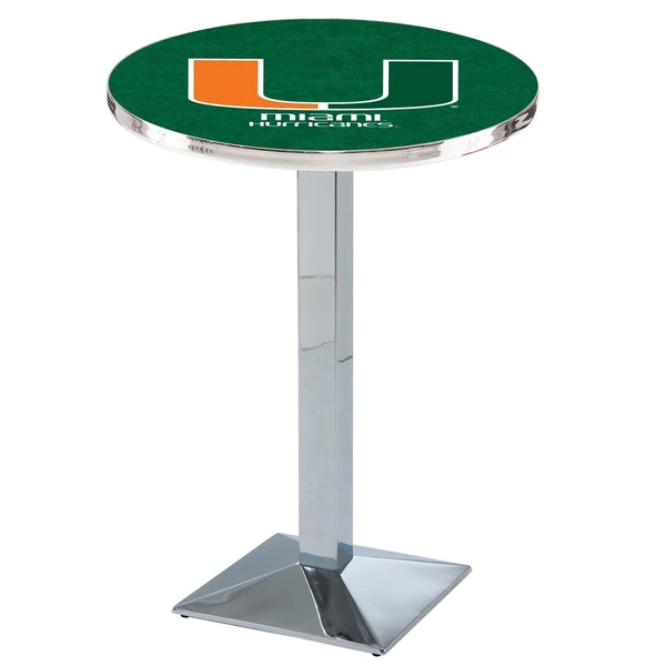 Made for the ultimate sports fan, you will be proud to show where your loyalty lies with this impressive Officially Licensed pub table from the Holland Bar Stool Co. This L217 table with square base is sure to add a touch of class to your setting. You can't find a higher quality logo table on the market. The sublimated, full color, scratch resistant, laminate top it attached with a VOC free, environmentally friendly, hot-melt adhesive. Table bases are commercial quality with a cast iron base plate, steel column, and spider. The base is triple chrome plated to ensure a rich, sleek, long lasting finish. The bases are easy to assemble and with locking tabs, top and bottom, are strong and steady. Tables have adjustable feet to accomodate any floor surface. If you're going to finish your bar, game room, or man cave – do it right with a table from the Holland Bar Stool Co.
