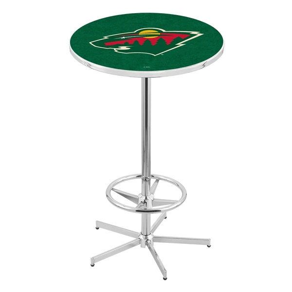 Made for the ultimate sports fan, you will be proud to show where your loyalty lies with this impressive Officially Licensed pub table from the Holland Bar Stool Co. This L216 table with star base and foot ring is sure to add a touch of class to your setting. You can't find a higher quality logo table on the market. The sublimated, full color, scratch resistant, laminate top it attached with a VOC free, environmentally friendly, hot-melt adhesive. The plating grade steel used for the base ensures it will withstand the abuse of the rowdiest of friends for years to come. The base is triple chrome plated to ensure a rich, sleek, long lasting finish. Assembly is easy and quick and the outcome is an acceptionally strong, sturdy table. Adjustable floor glides make for a steady table even on an unlevel floor. If you're going to finish your bar, game room, or man cave – do it right with a table from the Holland Bar Stool Co.