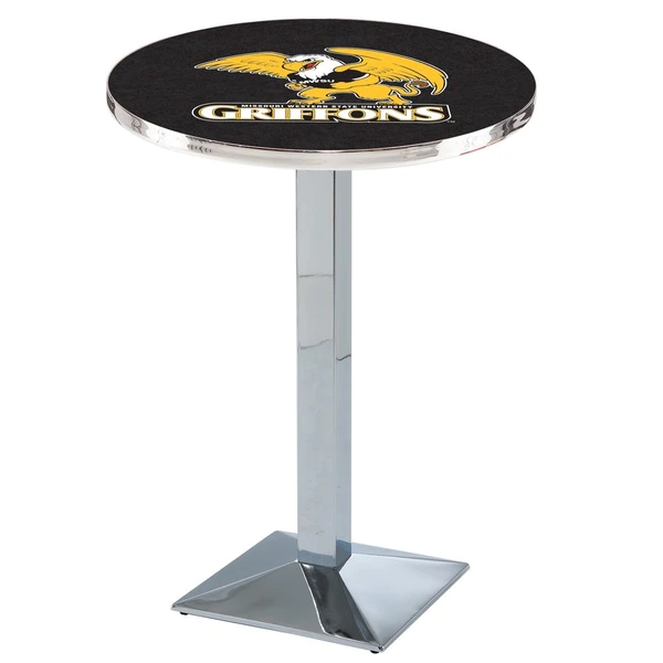 Made for the ultimate sports fan, you will be proud to show where your loyalty lies with this impressive Officially Licensed pub table from the Holland Bar Stool Co. This L217 table with square base is sure to add a touch of class to your setting. You can't find a higher quality logo table on the market. The sublimated, full color, scratch resistant, laminate top it attached with a VOC free, environmentally friendly, hot-melt adhesive. Table bases are commercial quality with a cast iron base plate, steel column, and spider. The base is triple chrome plated to ensure a rich, sleek, long lasting finish. The bases are easy to assemble and with locking tabs, top and bottom, are strong and steady. Tables have adjustable feet to accomodate any floor surface. If you're going to finish your bar, game room, or man cave – do it right with a table from the Holland Bar Stool Co.