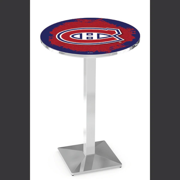 Made for the ultimate sports fan, you will be proud to show where your loyalty lies with this impressive Officially Licensed pub table from the Holland Bar Stool Co. This L217 table with square base is sure to add a touch of class to your setting. You can't find a higher quality logo table on the market. The sublimated, full color, scratch resistant, laminate top it attached with a VOC free, environmentally friendly, hot-melt adhesive. Table bases are commercial quality with a cast iron base plate, steel column, and spider. The base is triple chrome plated to ensure a rich, sleek, long lasting finish. The bases are easy to assemble and with locking tabs, top and bottom, are strong and steady. Tables have adjustable feet to accomodate any floor surface. If you're going to finish your bar, game room, or man cave – do it right with a table from the Holland Bar Stool Co.