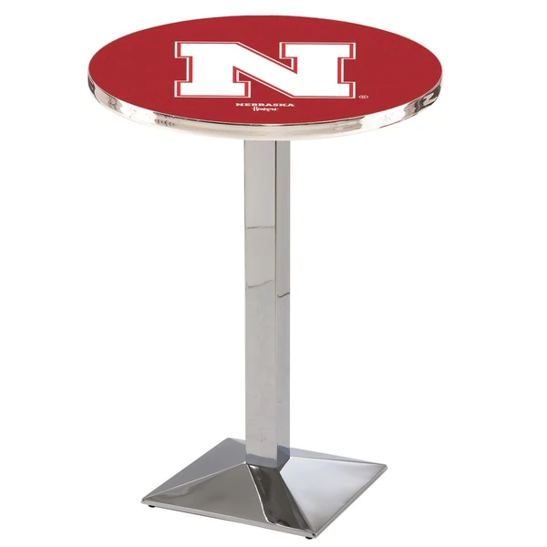 Made for the ultimate sports fan, you will be proud to show where your loyalty lies with this impressive Officially Licensed pub table from the Holland Bar Stool Co. This L217 table with square base is sure to add a touch of class to your setting. You can't find a higher quality logo table on the market. The sublimated, full color, scratch resistant, laminate top it attached with a VOC free, environmentally friendly, hot-melt adhesive. Table bases are commercial quality with a cast iron base plate, steel column, and spider. The base is triple chrome plated to ensure a rich, sleek, long lasting finish. The bases are easy to assemble and with locking tabs, top and bottom, are strong and steady. Tables have adjustable feet to accomodate any floor surface. If you're going to finish your bar, game room, or man cave – do it right with a table from the Holland Bar Stool Co.