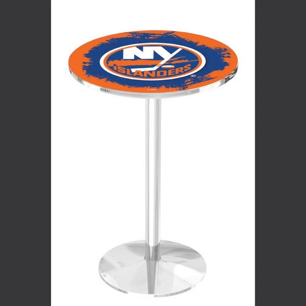 Made for the ultimate sports fan, you will be proud to show where your loyalty lies with this impressive Officially Licensed pub table from the Holland Bar Stool Co. This L214 table with round base is sure to add a touch of class to your setting. You can't find a higher quality logo table on the market. The sublimated, full color, scratch resistant, laminate top it attached with a VOC free, environmentally friendly, hot-melt adhesive. Table bases are commercial quality with a cast iron base plate, steel column, and spider. The base is triple chrome plated to ensure a rich, sleek, long lasting finish. The bases are easy to assemble and with locking tabs, top and bottom, are strong and steady. Tables have adjustable feet to accomodate any floor surface. If you're going to finish your bar, game room, or man cave – do it right with a table from the Holland Bar Stool Co.
