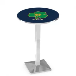 Made for the ultimate sports fan, you will be proud to show where your loyalty lies with this impressive Officially Licensed pub table from the Holland Bar Stool Co. This L217 table with square base is sure to add a touch of class to your setting. You can't find a higher quality logo table on the market. The sublimated, full color, scratch resistant, laminate top it attached with a VOC free, environmentally friendly, hot-melt adhesive. Table bases are commercial quality with a cast iron base plate, steel column, and spider. The base is triple chrome plated to ensure a rich, sleek, long lasting finish. The bases are easy to assemble and with locking tabs, top and bottom, are strong and steady. Tables have adjustable feet to accomodate any floor surface. If you're going to finish your bar, game room, or man cave – do it right with a table from the Holland Bar Stool Co.