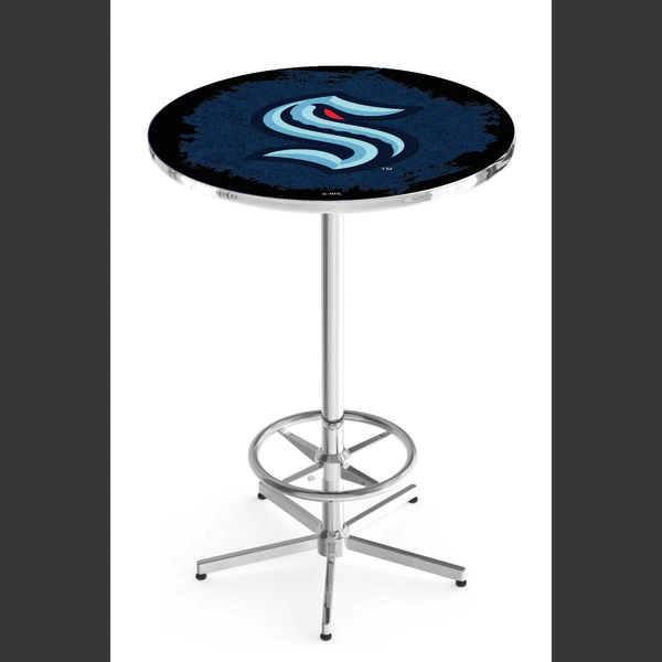 Made for the ultimate sports fan, you will be proud to show where your loyalty lies with this impressive Officially Licensed pub table from the Holland Bar Stool Co. This L216 table with star base and foot ring is sure to add a touch of class to your setting. You can't find a higher quality logo table on the market. The sublimated, full color, scratch resistant, laminate top it attached with a VOC free, environmentally friendly, hot-melt adhesive. The plating grade steel used for the base ensures it will withstand the abuse of the rowdiest of friends for years to come. The base is triple chrome plated to ensure a rich, sleek, long lasting finish. Assembly is easy and quick and the outcome is an acceptionally strong, sturdy table. Adjustable floor glides make for a steady table even on an unlevel floor. If you're going to finish your bar, game room, or man cave – do it right with a table from the Holland Bar Stool Co.