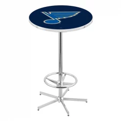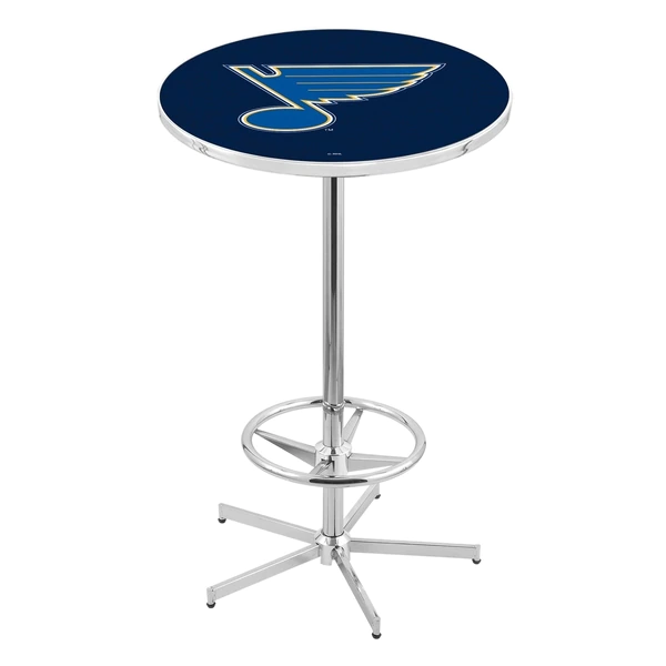Made for the ultimate sports fan, you will be proud to show where your loyalty lies with this impressive Officially Licensed pub table from the Holland Bar Stool Co. This L216 table with star base and foot ring is sure to add a touch of class to your setting. You can't find a higher quality logo table on the market. The sublimated, full color, scratch resistant, laminate top it attached with a VOC free, environmentally friendly, hot-melt adhesive. The plating grade steel used for the base ensures it will withstand the abuse of the rowdiest of friends for years to come. The base is triple chrome plated to ensure a rich, sleek, long lasting finish. Assembly is easy and quick and the outcome is an acceptionally strong, sturdy table. Adjustable floor glides make for a steady table even on an unlevel floor. If you're going to finish your bar, game room, or man cave – do it right with a table from the Holland Bar Stool Co.