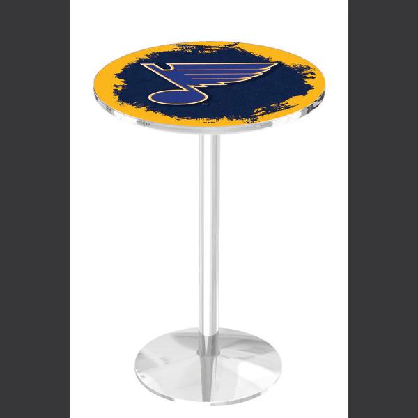 Made for the ultimate sports fan, you will be proud to show where your loyalty lies with this impressive Officially Licensed pub table from the Holland Bar Stool Co. This L214 table with round base is sure to add a touch of class to your setting. You can't find a higher quality logo table on the market. The sublimated, full color, scratch resistant, laminate top it attached with a VOC free, environmentally friendly, hot-melt adhesive. Table bases are commercial quality with a cast iron base plate, steel column, and spider. The base is triple chrome plated to ensure a rich, sleek, long lasting finish. The bases are easy to assemble and with locking tabs, top and bottom, are strong and steady. Tables have adjustable feet to accomodate any floor surface. If you're going to finish your bar, game room, or man cave – do it right with a table from the Holland Bar Stool Co.