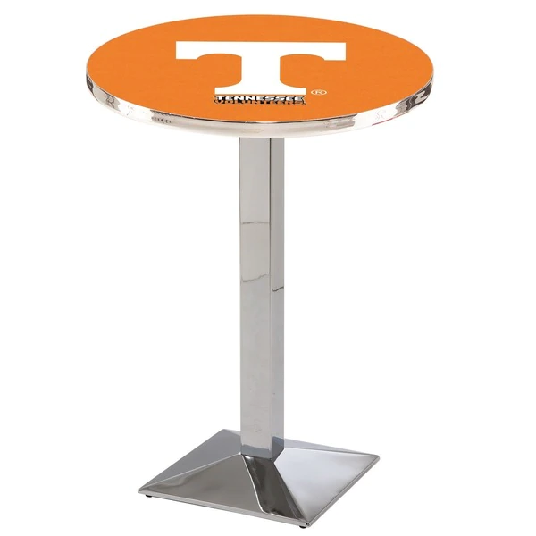 Made for the ultimate sports fan, you will be proud to show where your loyalty lies with this impressive Officially Licensed pub table from the Holland Bar Stool Co. This L217 table with square base is sure to add a touch of class to your setting. You can't find a higher quality logo table on the market. The sublimated, full color, scratch resistant, laminate top it attached with a VOC free, environmentally friendly, hot-melt adhesive. Table bases are commercial quality with a cast iron base plate, steel column, and spider. The base is triple chrome plated to ensure a rich, sleek, long lasting finish. The bases are easy to assemble and with locking tabs, top and bottom, are strong and steady. Tables have adjustable feet to accomodate any floor surface. If you're going to finish your bar, game room, or man cave – do it right with a table from the Holland Bar Stool Co.