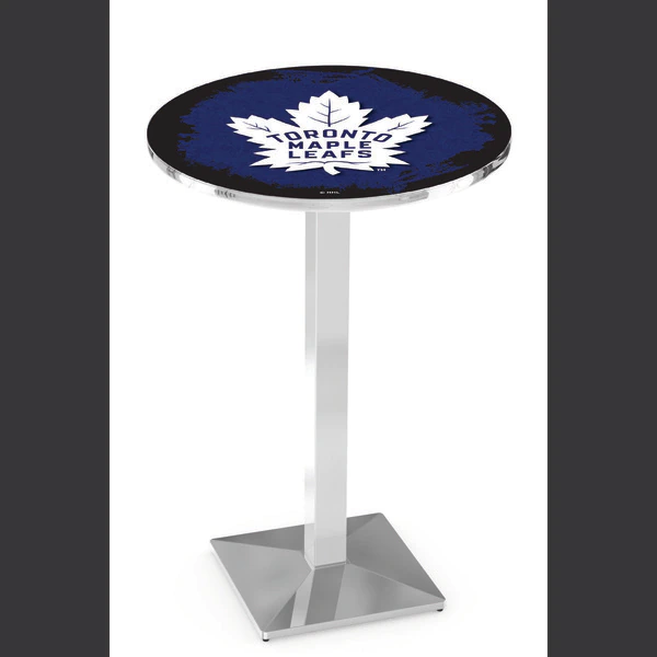 Made for the ultimate sports fan, you will be proud to show where your loyalty lies with this impressive Officially Licensed pub table from the Holland Bar Stool Co. This L217 table with square base is sure to add a touch of class to your setting. You can't find a higher quality logo table on the market. The sublimated, full color, scratch resistant, laminate top it attached with a VOC free, environmentally friendly, hot-melt adhesive. Table bases are commercial quality with a cast iron base plate, steel column, and spider. The base is triple chrome plated to ensure a rich, sleek, long lasting finish. The bases are easy to assemble and with locking tabs, top and bottom, are strong and steady. Tables have adjustable feet to accomodate any floor surface. If you're going to finish your bar, game room, or man cave – do it right with a table from the Holland Bar Stool Co.