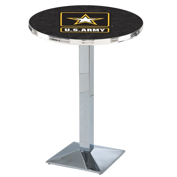 Show your support for our troops (past and current) with this impressive Officially Licensed pub table from the Holland Bar Stool Co. This L217 table with square base is sure to add a touch of class to your setting. You can't find a higher quality logo table on the market. The sublimated, full color, scratch resistant, laminate top it attached with a VOC free, environmentally friendly, hot-melt adhesive. Table bases are commercial quality with a cast iron base plate, steel column, and spider. The base is triple chrome plated to ensure a rich, sleek, long lasting finish. The bases are easy to assemble and with locking tabs, top and bottom, are strong and steady. Tables have adjustable feet to accomodate any floor surface. If you're going to finish your bar, game room, or man cave – do it right with a table from the Holland Bar Stool Co.