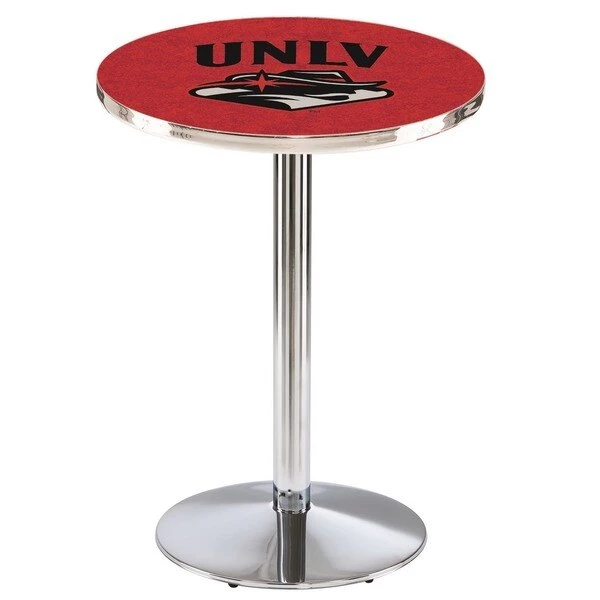 Made for the ultimate sports fan, you will be proud to show where your loyalty lies with this impressive Officially Licensed pub table from the Holland Bar Stool Co. This L214 table with round base is sure to add a touch of class to your setting. You can't find a higher quality logo table on the market. The sublimated, full color, scratch resistant, laminate top it attached with a VOC free, environmentally friendly, hot-melt adhesive. Table bases are commercial quality with a cast iron base plate, steel column, and spider. The base is triple chrome plated to ensure a rich, sleek, long lasting finish. The bases are easy to assemble and with locking tabs, top and bottom, are strong and steady. Tables have adjustable feet to accomodate any floor surface. If you're going to finish your bar, game room, or man cave – do it right with a table from the Holland Bar Stool Co.