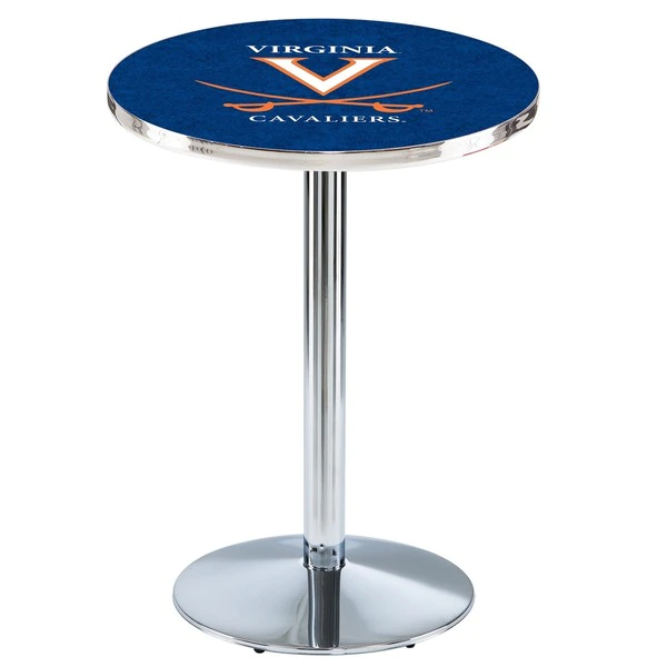 Made for the ultimate sports fan, you will be proud to show where your loyalty lies with this impressive Officially Licensed pub table from the Holland Bar Stool Co. This L214 table with round base is sure to add a touch of class to your setting. You can't find a higher quality logo table on the market. The sublimated, full color, scratch resistant, laminate top it attached with a VOC free, environmentally friendly, hot-melt adhesive. Table bases are commercial quality with a cast iron base plate, steel column, and spider. The base is triple chrome plated to ensure a rich, sleek, long lasting finish. The bases are easy to assemble and with locking tabs, top and bottom, are strong and steady. Tables have adjustable feet to accomodate any floor surface. If you're going to finish your bar, game room, or man cave – do it right with a table from the Holland Bar Stool Co.