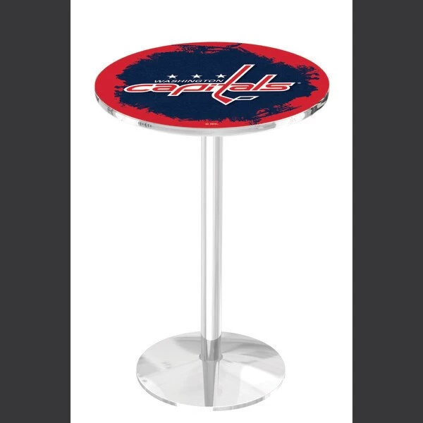 Made for the ultimate sports fan, you will be proud to show where your loyalty lies with this impressive Officially Licensed pub table from the Holland Bar Stool Co. This L214 table with round base is sure to add a touch of class to your setting. You can't find a higher quality logo table on the market. The sublimated, full color, scratch resistant, laminate top it attached with a VOC free, environmentally friendly, hot-melt adhesive. Table bases are commercial quality with a cast iron base plate, steel column, and spider. The base is triple chrome plated to ensure a rich, sleek, long lasting finish. The bases are easy to assemble and with locking tabs, top and bottom, are strong and steady. Tables have adjustable feet to accomodate any floor surface. If you're going to finish your bar, game room, or man cave – do it right with a table from the Holland Bar Stool Co.