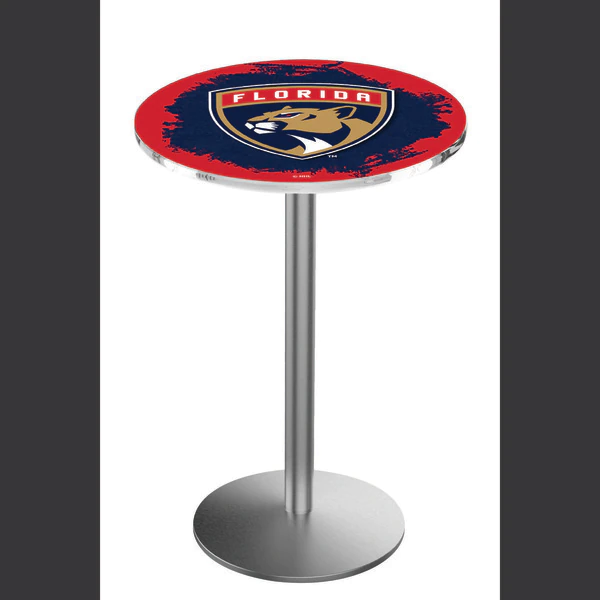 Made for the ultimate sports fan, you will be proud to show where your loyalty lies with this impressive Officially Licensed pub table from the Holland Bar Stool Co. This L214 table with round base is sure to add a touch of class to your setting. You can't find a higher quality logo table on the market. The sublimated, full color, scratch resistant, laminate top it attached with a VOC free, environmentally friendly, hot-melt adhesive. Table bases are commercial quality with a cast iron base plate, steel column, and spider. The base is a 304 Stainless Steel that will look great no matter where you put it. The bases are easy to assemble and with locking tabs, top and bottom, are strong and steady. Tables have adjustable feet to accomodate any floor surface. If you're going to finish your bar, game room, or man cave – do it right with a table from the Holland Bar Stool Co.