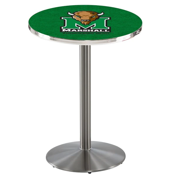 Made for the ultimate sports fan, you will be proud to show where your loyalty lies with this impressive Officially Licensed pub table from the Holland Bar Stool Co. This L214 table with round base is sure to add a touch of class to your setting. You can't find a higher quality logo table on the market. The sublimated, full color, scratch resistant, laminate top it attached with a VOC free, environmentally friendly, hot-melt adhesive. Table bases are commercial quality with a cast iron base plate, steel column, and spider. The base is a 304 Stainless Steel that will look great no matter where you put it. The bases are easy to assemble and with locking tabs, top and bottom, are strong and steady. Tables have adjustable feet to accomodate any floor surface. If you're going to finish your bar, game room, or man cave – do it right with a table from the Holland Bar Stool Co.