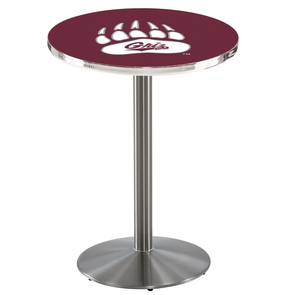 Made for the ultimate sports fan, you will be proud to show where your loyalty lies with this impressive Officially Licensed pub table from the Holland Bar Stool Co. This L214 table with round base is sure to add a touch of class to your setting. You can't find a higher quality logo table on the market. The sublimated, full color, scratch resistant, laminate top it attached with a VOC free, environmentally friendly, hot-melt adhesive. Table bases are commercial quality with a cast iron base plate, steel column, and spider. The base is a 304 Stainless Steel that will look great no matter where you put it. The bases are easy to assemble and with locking tabs, top and bottom, are strong and steady. Tables have adjustable feet to accomodate any floor surface. If you're going to finish your bar, game room, or man cave – do it right with a table from the Holland Bar Stool Co.