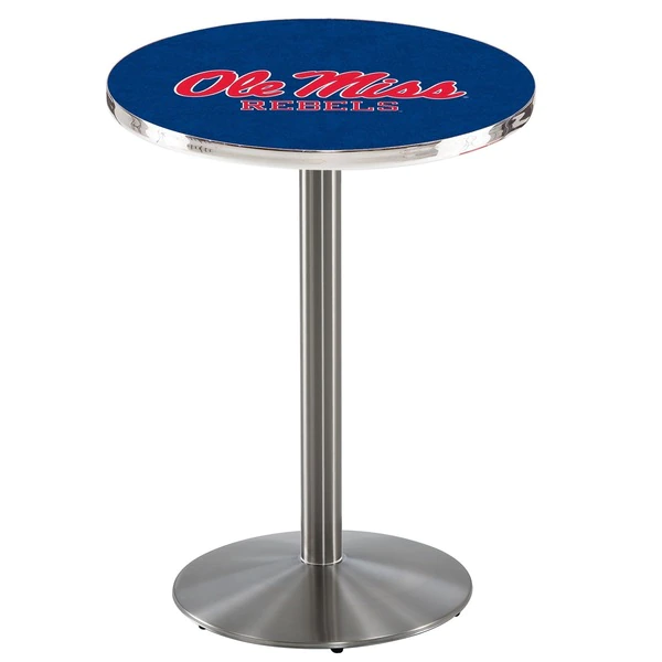 Made for the ultimate sports fan, you will be proud to show where your loyalty lies with this impressive Officially Licensed pub table from the Holland Bar Stool Co. This L214 table with round base is sure to add a touch of class to your setting. You can't find a higher quality logo table on the market. The sublimated, full color, scratch resistant, laminate top it attached with a VOC free, environmentally friendly, hot-melt adhesive. Table bases are commercial quality with a cast iron base plate, steel column, and spider. The base is a 304 Stainless Steel that will look great no matter where you put it. The bases are easy to assemble and with locking tabs, top and bottom, are strong and steady. Tables have adjustable feet to accomodate any floor surface. If you're going to finish your bar, game room, or man cave – do it right with a table from the Holland Bar Stool Co.