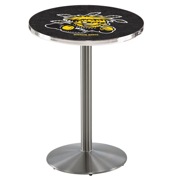 Made for the ultimate sports fan, you will be proud to show where your loyalty lies with this impressive Officially Licensed pub table from the Holland Bar Stool Co. This L214 table with round base is sure to add a touch of class to your setting. You can't find a higher quality logo table on the market. The sublimated, full color, scratch resistant, laminate top it attached with a VOC free, environmentally friendly, hot-melt adhesive. Table bases are commercial quality with a cast iron base plate, steel column, and spider. The base is a 304 Stainless Steel that will look great no matter where you put it. The bases are easy to assemble and with locking tabs, top and bottom, are strong and steady. Tables have adjustable feet to accomodate any floor surface. If you're going to finish your bar, game room, or man cave – do it right with a table from the Holland Bar Stool Co.