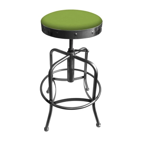 Holland Bar Stool's Adjustable, Industrial style swivel stool brings back the classic look of the early 1900's drafting stools. Built to last a lifetime, the steel tube frame has solid welds on the outside of the legs, connecting the substantial, 18" diameter foot ring, and on the inside, attaching a solid, steel inner support. The 15" diameter seat is accented by 2", studded ring. The 1" thick, solid steel screw, allows the seat height to be adjusted from 24" (Counter Height) to 30" (Bar Height). The locking nut can set the stool to your desired height. The cushion seats are of the highest quality as well, utilizing a breathable, commercial grade vinyl or fabric. At the heart of the cushion is 2 1/2 inches of highly-dense foam that provides maximum support and will not breakdown in a couple years. Don't be fooled by a cheap immitation. Buy the best, with a Holland Bar Stool. – – With over 18 years of experience in the furniture industry, Holland Bar Stool Co. was founded on the principles of fine quality, craftsmanship, and service. As an industry leading manufacturer of upscale, commercial quality barstools, tables, and chairs, we use the finest high-quality plating grade steel and hardwood to produce our products. We distance ourselves from competitors by building our products with care and thought. We pride ourselves on having tough, durable products that are known for their quality. If you're finishing your bar or game room with a new stool, chair, or table, than do it right – with a Holland Bar Stool.