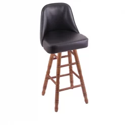 Customize your very own counter stool with help from the Holland Bar Stool Co. This Grizzly swivel bar stool offers superb comfort and excellent back support. The base is built from the very highest quality U.S. sourced, solid oak or maple. The legs are a full 1 3⁄4” thick and the stretchers are 1” thick. The way the base is constructed is second to none. The joints are secured with both epoxy glue and screws to ensure the highest strength and quality for any application. The 52 ball bearing swivel eliminates any unnecessary torque on the joints, so your base will not “wobble” like lesser quality wood seating. The fully upholstered black vinyl seat is of the highest quality, utilizing a breathable, commercial grade vinyl. Underneath this is 4 inches of highly-dense foam to provide maximum support. You won't find a higher quality stool on the market. A multi step finishing process ensures a durable, great looking base for years to come. If you are going to finish your bar or dining area – do it right, with a stool from the Holland Bar Stool Co.