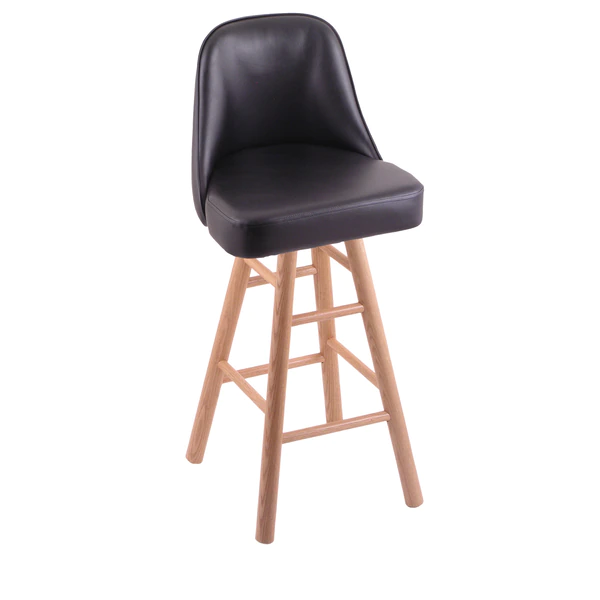 Customize your very own counter stool with help from the Holland Bar Stool Co. This Grizzly swivel bar stool offers superb comfort and excellent back support. The base is built from the very highest quality U.S. sourced, solid oak or maple. The legs are a full 1 3⁄4” thick and the stretchers are 1” thick. The way the base is constructed is second to none. The joints are secured with both epoxy glue and screws to ensure the highest strength and quality for any application. The 52 ball bearing swivel eliminates any unnecessary torque on the joints, so your base will not “wobble” like lesser quality wood seating. The fully upholstered black vinyl seat is of the highest quality, utilizing a breathable, commercial grade vinyl. Underneath this is 4 inches of highly-dense foam to provide maximum support. You won't find a higher quality stool on the market. A multi step finishing process ensures a durable, great looking base for years to come. If you are going to finish your bar or dining area – do it right, with a stool from the Holland Bar Stool Co.