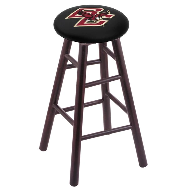 Made for the ultimate sports fan, you will be proud to show where your loyalty lies with this impressive Officially Licensed stool from the Holland Bar Stool Co. You won't find a higher quality logo stool on the market. This logo swivel height stool is very versatile and built from the very highest quality U.S. sourced, solid oak or maple. A state of the art print process is used in applying specially formulated UV vinyl ink in numerous stages to produce a sharp, crisp, clear image to ensure a perfect reproduction of the logo. The legs are a full 1 3⁄4” thick and the stretchers are 1” thick. The way the base is constructed is second to none. The joints are secured with both epoxy glue and screws to ensure the highest strength and quality for any application. The 52 ball bearing swivel eliminates any unnecessary torque on the joints, so your base will not “wobble” like lesser quality wood seating. The 14 1⁄2” wide cushion seats are of the highest quality as well, utilizing a breathable, commercial grade vinyl or fabric. At the heart of the cushion is 2 1/2 inches of highly-dense foam that provides maximum support and will not breakdown in a couple years. A multi step finishing process ensures a durable, great looking finish for years to come. If you are in the market for a cool, Officially Licensed logo stool – do it right, with help from the Holland Bar Stool Co.