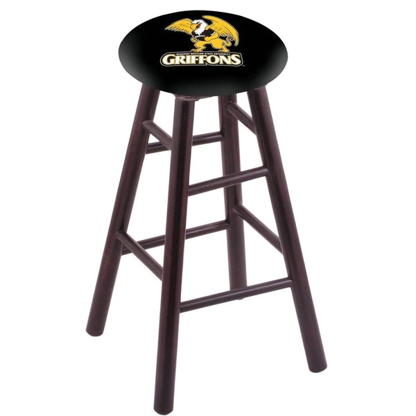 Made for the ultimate sports fan, you will be proud to show where your loyalty lies with this impressive Officially Licensed stool from the Holland Bar Stool Co. You won't find a higher quality logo stool on the market. This logo swivel height stool is very versatile and built from the very highest quality U.S. sourced, solid oak or maple. A state of the art print process is used in applying specially formulated UV vinyl ink in numerous stages to produce a sharp, crisp, clear image to ensure a perfect reproduction of the logo. The legs are a full 1 3⁄4” thick and the stretchers are 1” thick. The way the base is constructed is second to none. The joints are secured with both epoxy glue and screws to ensure the highest strength and quality for any application. The 52 ball bearing swivel eliminates any unnecessary torque on the joints, so your base will not “wobble” like lesser quality wood seating. The 14 1⁄2” wide cushion seats are of the highest quality as well, utilizing a breathable, commercial grade vinyl or fabric. At the heart of the cushion is 2 1/2 inches of highly-dense foam that provides maximum support and will not breakdown in a couple years. A multi step finishing process ensures a durable, great looking finish for years to come. If you are in the market for a cool, Officially Licensed logo stool – do it right, with help from the Holland Bar Stool Co.
