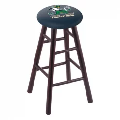 Made for the ultimate sports fan, you will be proud to show where your loyalty lies with this impressive Officially Licensed stool from the Holland Bar Stool Co. You won't find a higher quality logo stool on the market. This logo swivel height stool is very versatile and built from the very highest quality U.S. sourced, solid oak or maple. A state of the art print process is used in applying specially formulated UV vinyl ink in numerous stages to produce a sharp, crisp, clear image to ensure a perfect reproduction of the logo. The legs are a full 1 3⁄4” thick and the stretchers are 1” thick. The way the base is constructed is second to none. The joints are secured with both epoxy glue and screws to ensure the highest strength and quality for any application. The 52 ball bearing swivel eliminates any unnecessary torque on the joints, so your base will not “wobble” like lesser quality wood seating. The 14 1⁄2” wide cushion seats are of the highest quality as well, utilizing a breathable, commercial grade vinyl or fabric. At the heart of the cushion is 2 1/2 inches of highly-dense foam that provides maximum support and will not breakdown in a couple years. A multi step finishing process ensures a durable, great looking finish for years to come. If you are in the market for a cool, Officially Licensed logo stool – do it right, with help from the Holland Bar Stool Co.