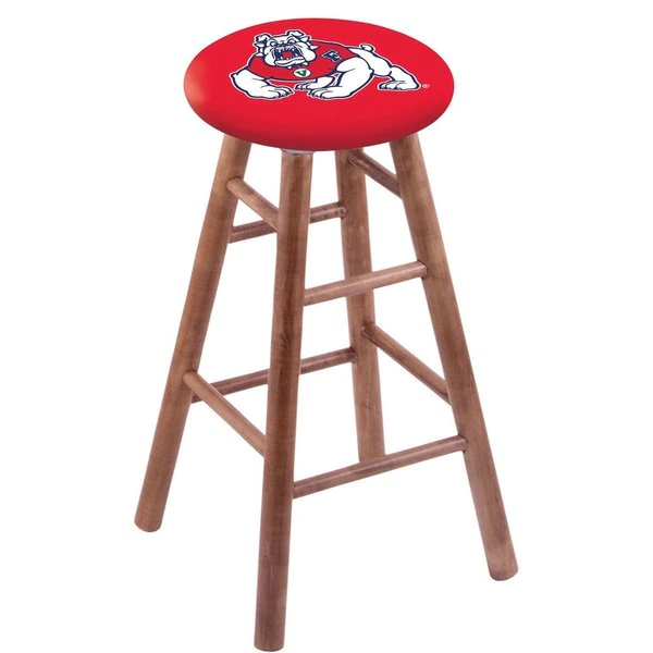 Made for the ultimate sports fan, you will be proud to show where your loyalty lies with this impressive Officially Licensed stool from the Holland Bar Stool Co. You won't find a higher quality logo stool on the market. This logo swivel height stool is very versatile and built from the very highest quality U.S. sourced, solid oak or maple. A state of the art print process is used in applying specially formulated UV vinyl ink in numerous stages to produce a sharp, crisp, clear image to ensure a perfect reproduction of the logo. The legs are a full 1 3⁄4” thick and the stretchers are 1” thick. The way the base is constructed is second to none. The joints are secured with both epoxy glue and screws to ensure the highest strength and quality for any application. The 52 ball bearing swivel eliminates any unnecessary torque on the joints, so your base will not “wobble” like lesser quality wood seating. The 14 1⁄2” wide cushion seats are of the highest quality as well, utilizing a breathable, commercial grade vinyl or fabric. At the heart of the cushion is 2 1/2 inches of highly-dense foam that provides maximum support and will not breakdown in a couple years. A multi step finishing process ensures a durable, great looking finish for years to come. If you are in the market for a cool, Officially Licensed logo stool – do it right, with help from the Holland Bar Stool Co.